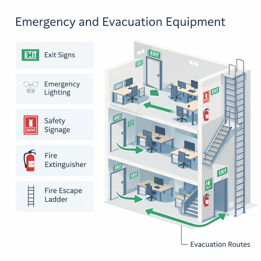 Emergency and evacuation equipment plays a vital role in minimizing risks during fire incidents by ensuring that occupants can exit the building quickly and safely. When combined with proper planning, regular drills, and clear evacuation procedures, these tools significantly improve emergency response outcomes and help prevent injuries or loss of life.