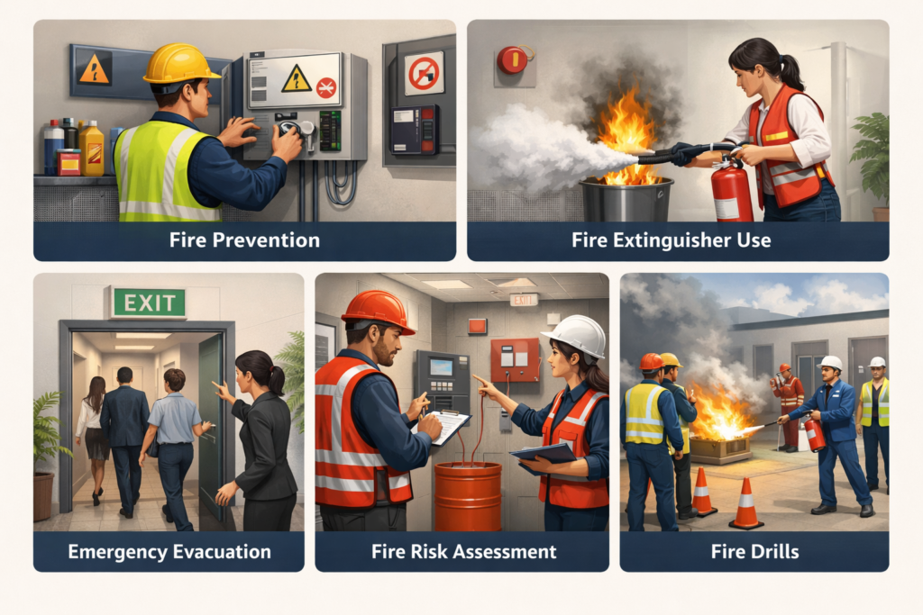 | Fire Warden Training | Emergency roles, evacuation control, coordination | Fire wardens, HSE officers |