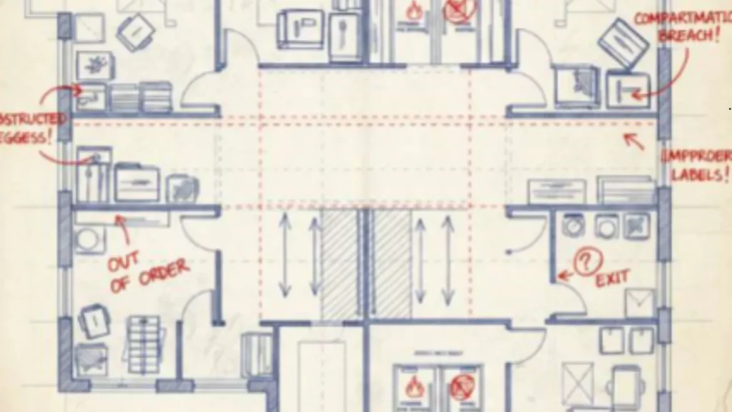 - Recommend corrective measures (clear exits, improve compartmentation, label and maintain fire doors).
